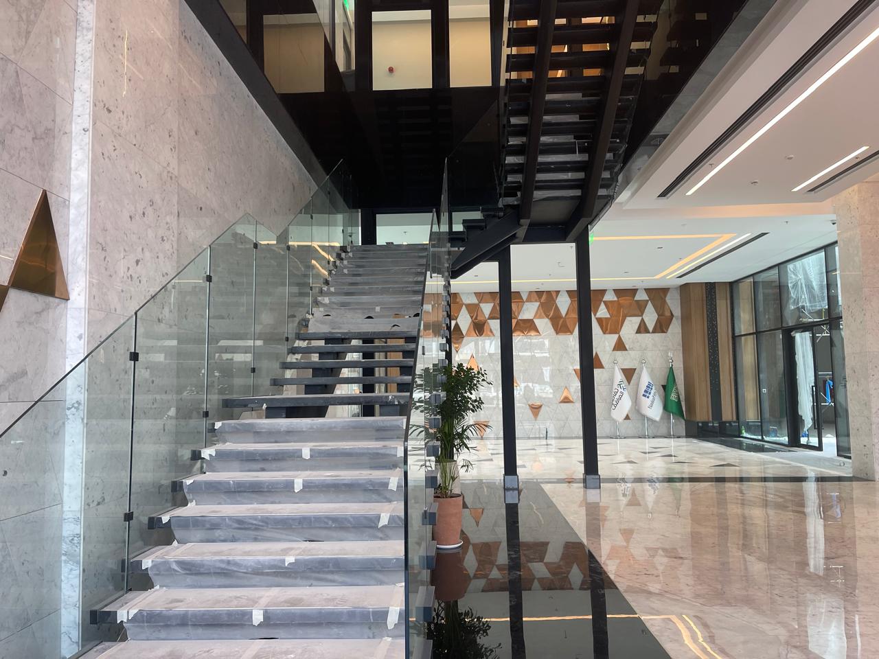 PROJECT INFORMATION DATE: April 26, 2022 CLIENT: Nawafez Trading Offices Nawafez Trading Offices Project Scope of work(metal fabrication works such as(Spiral staircases, Glass Handrail.Stainless Steel Cladding of elevators ,Canopy and pergola)