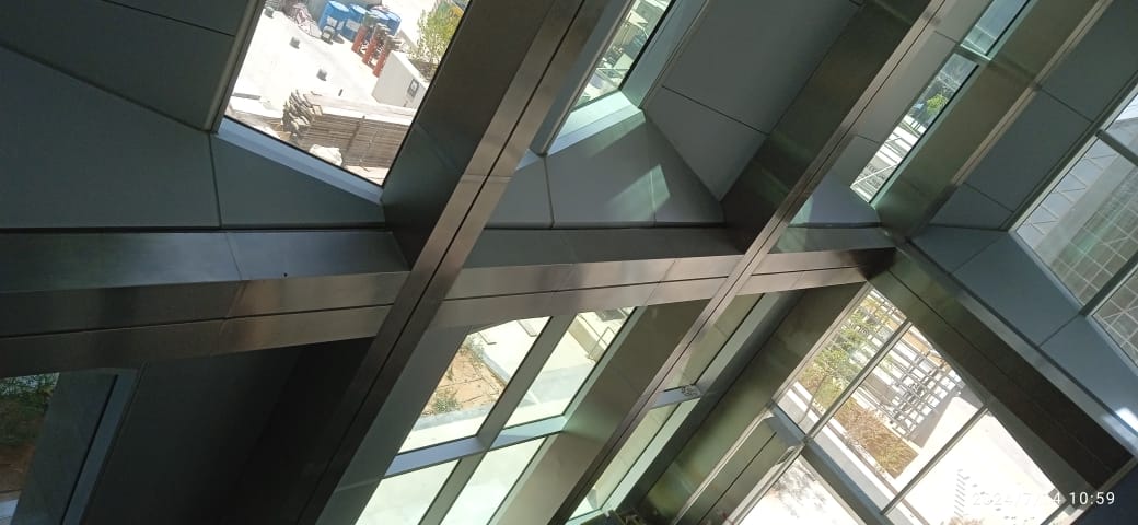 معلومات المشروع التاريخ : 26 ابريل 2022 العميل : www.kafd.sa المركز المالي نطاق العمل: كلادينج الفولاذ المقاوم للصدأ، الدرابزين المجلفن، الدرابزين المصنوع من الفولاذ المقاوم للصدأ، السلالم الحلزونية، أضواء الطيران، الشبكات المعدنية (Grating)، الدرابزين الزجاجي، هياكل الظل.